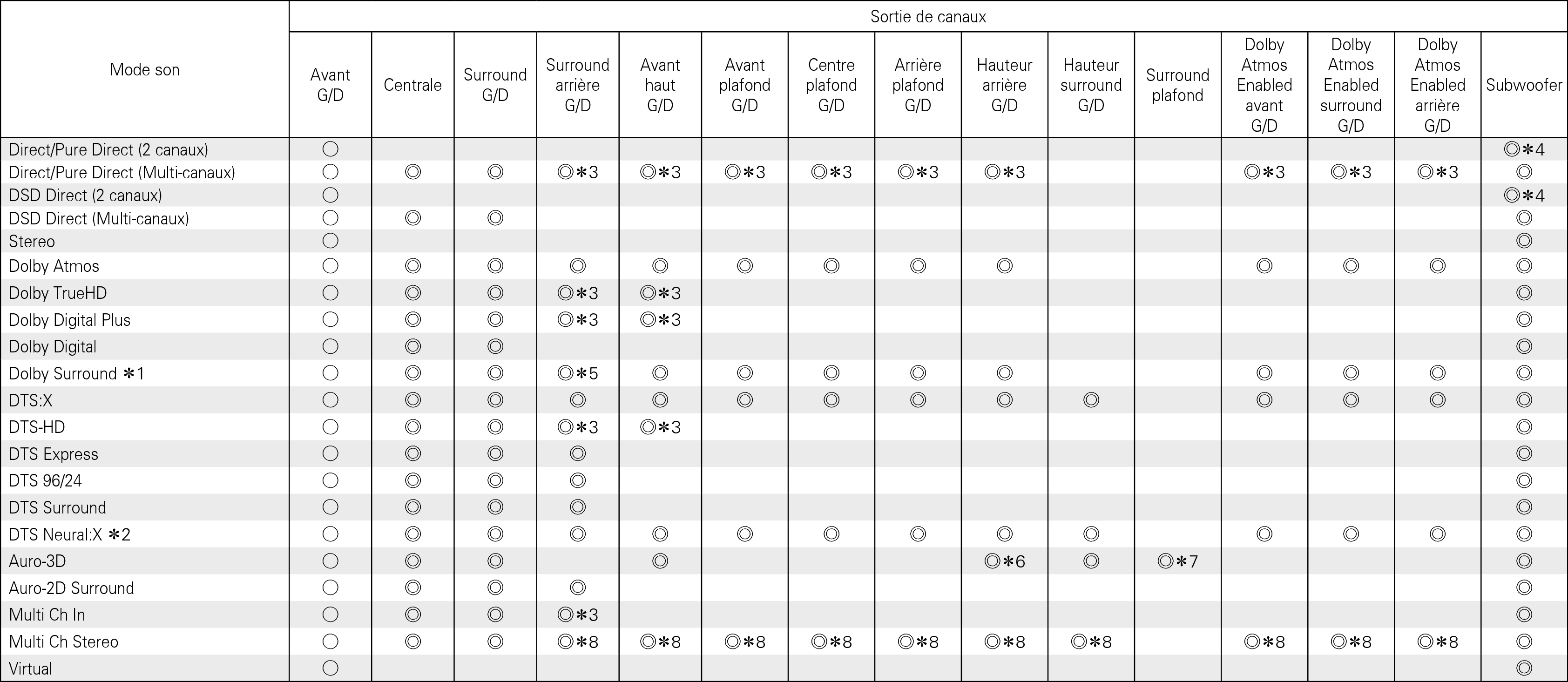 Indique les canaux de sortie audio. Les canaux de sortie dépendent du paramétrage de “Config. enceintes”. lien
