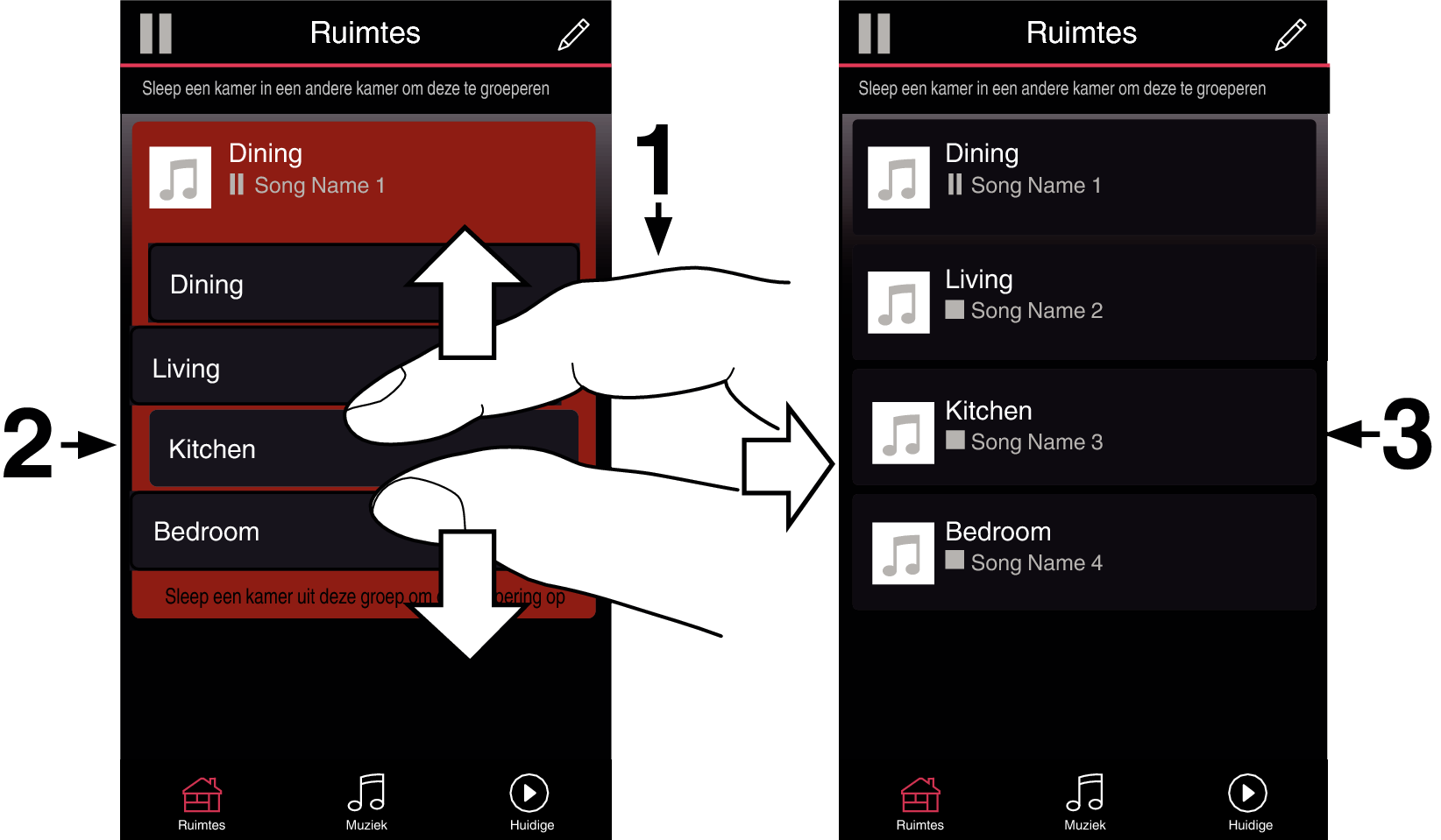 Luisteren naar dezelfde muziek in meerdere ruimtes