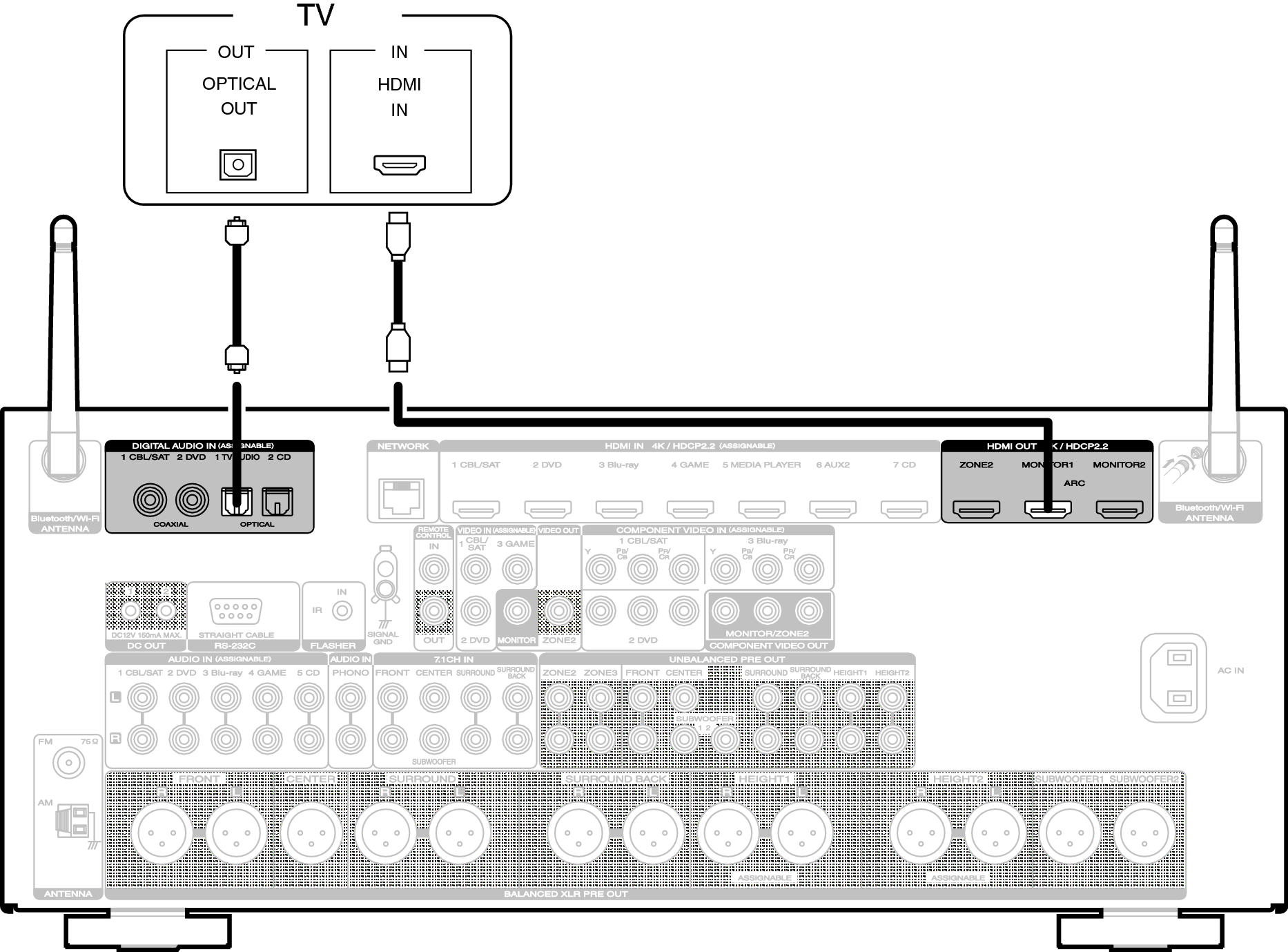 Aansluiting 2: tv uitgerust met een HDMI-aansluiting en niet compatibel met ARC (Audio Return Channel)