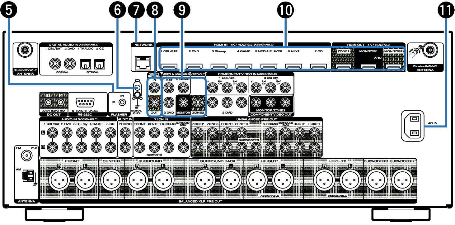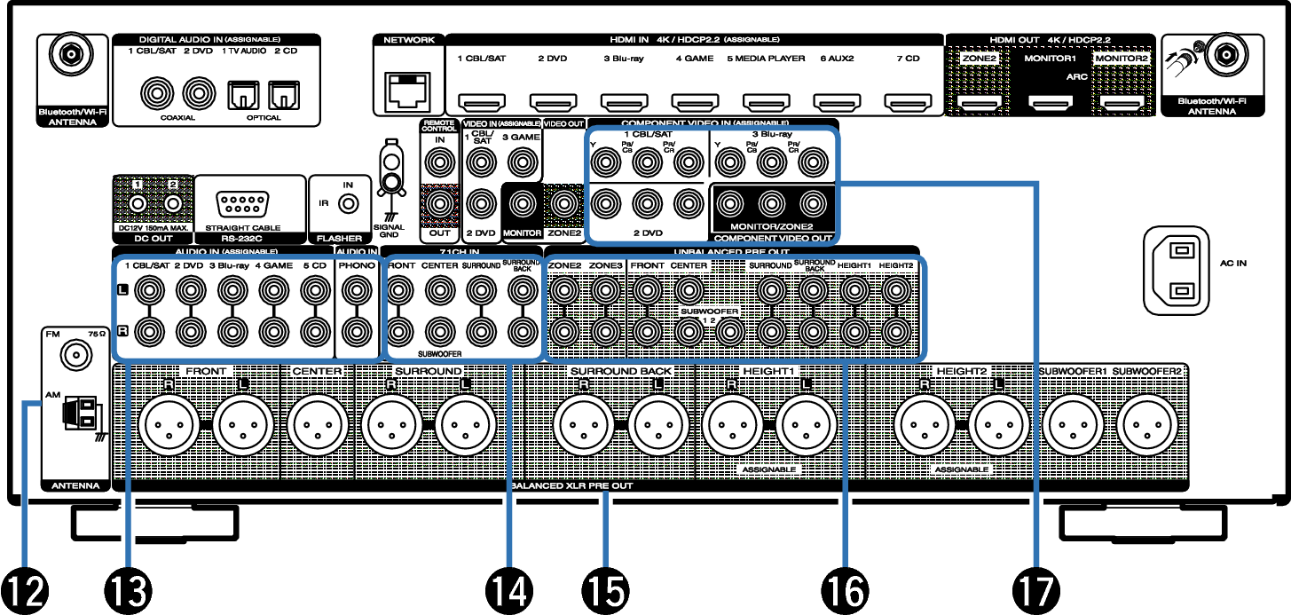 Входные разъемы для 7.1-канального сигнала (7.1CH IN)