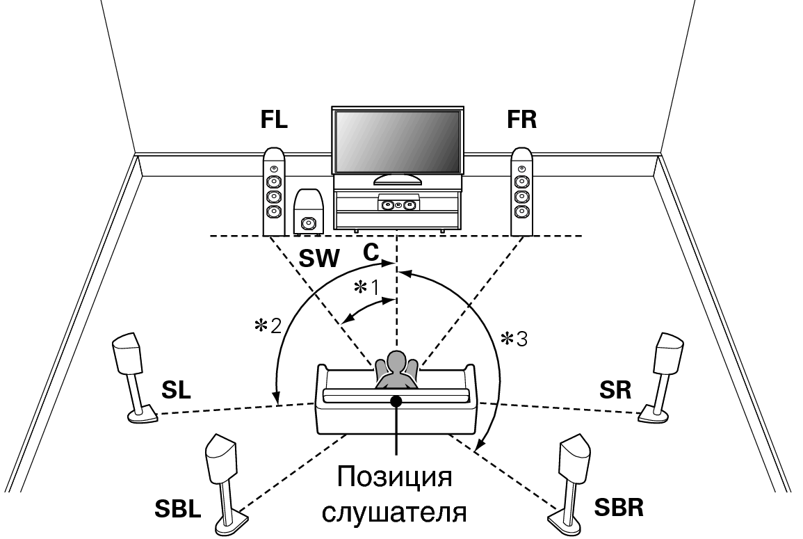 При использовании только одного тылового динамика объемного звучания его следует установить непосредственно за позицией прослушивания.