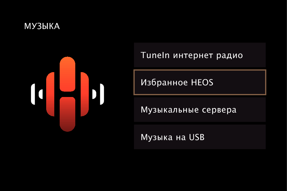 выберите пункт “Избранное HEOS”, а затем нажмите кнопку ENTER.