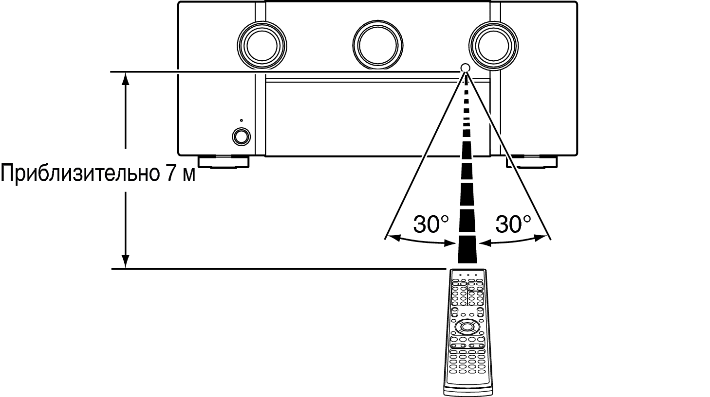 При управлении направляйте пульт ДУ на датчик ДУ.