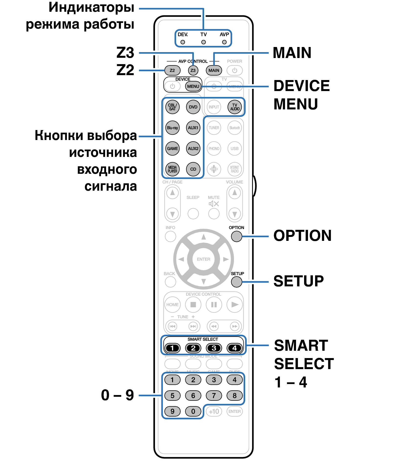 Если зарегистрировать коды предварительной настройки в пульте ДУ из комплекта поставки, им можно впоследствии пользоваться для управления любой имеющейся аппаратурой, например, DVD проигрывателями или телевизорами производства разных изготовителей.