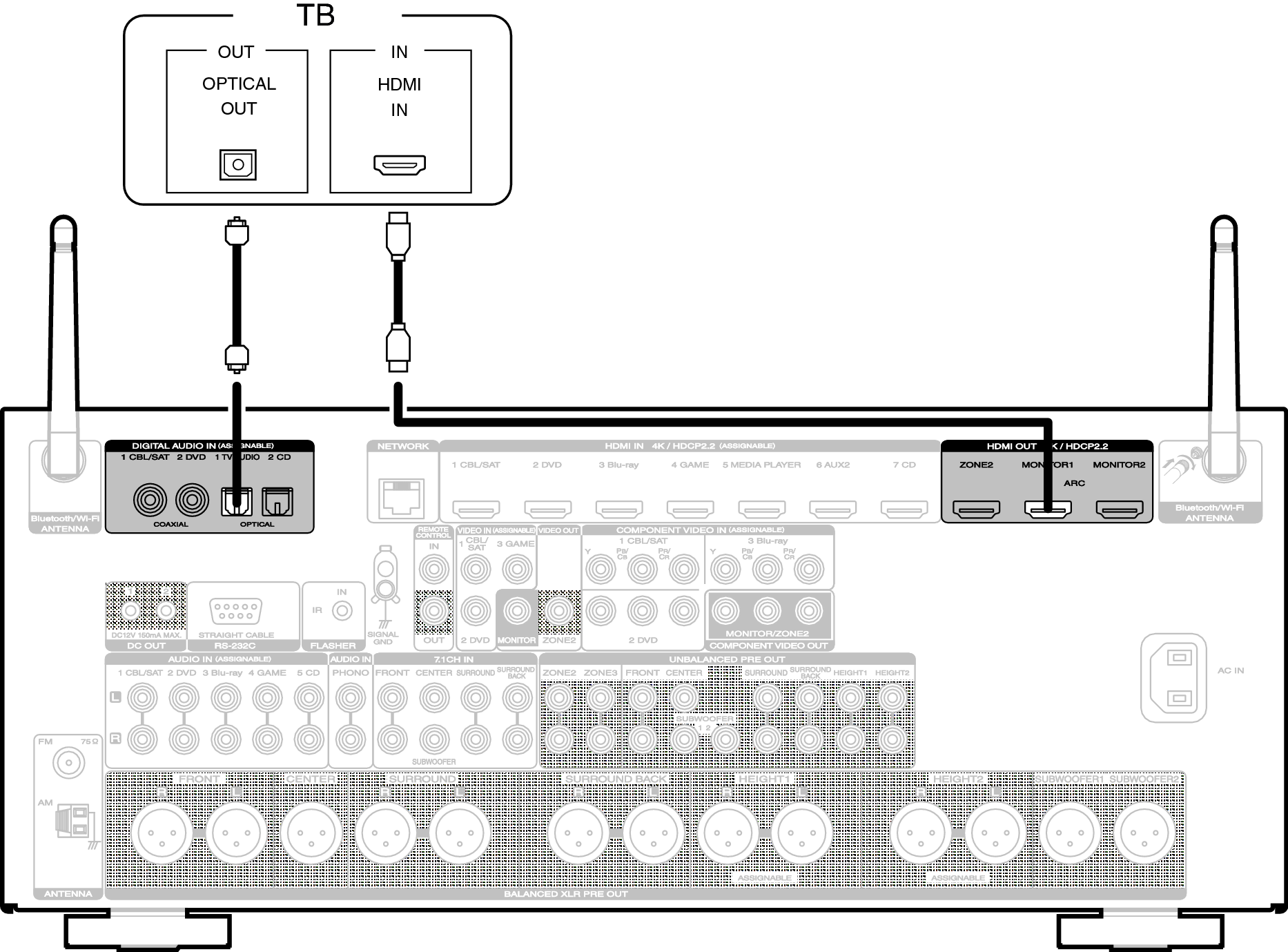 Соединение 2: Телевизор оснащен разъемом HDMI и несовместим с ARC (Audio Return Channel)