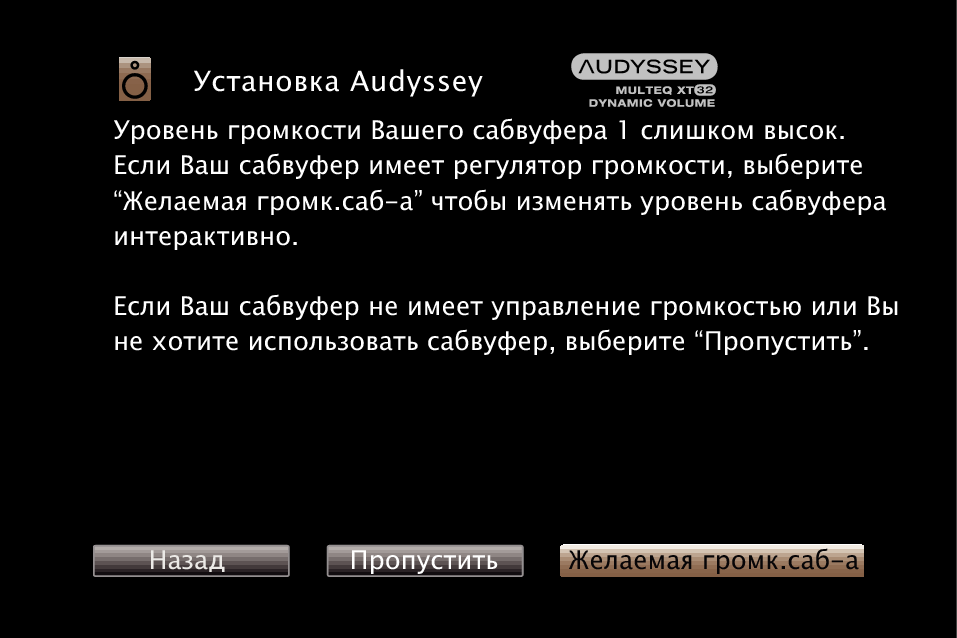Сообщение об ошибке в уровне громкости сабвуфера и его настройка