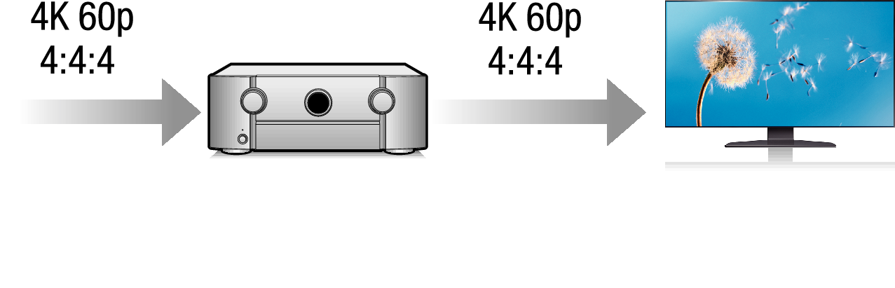 Данное устройство также поддерживает обработку изображений для 4K 60p, 4:4:4 и 24-битных видео. Путем обработки видео в оригинальном разрешении, это устройство позволяет наслаждаться безупречным качеством изображения с высоким разрешением.