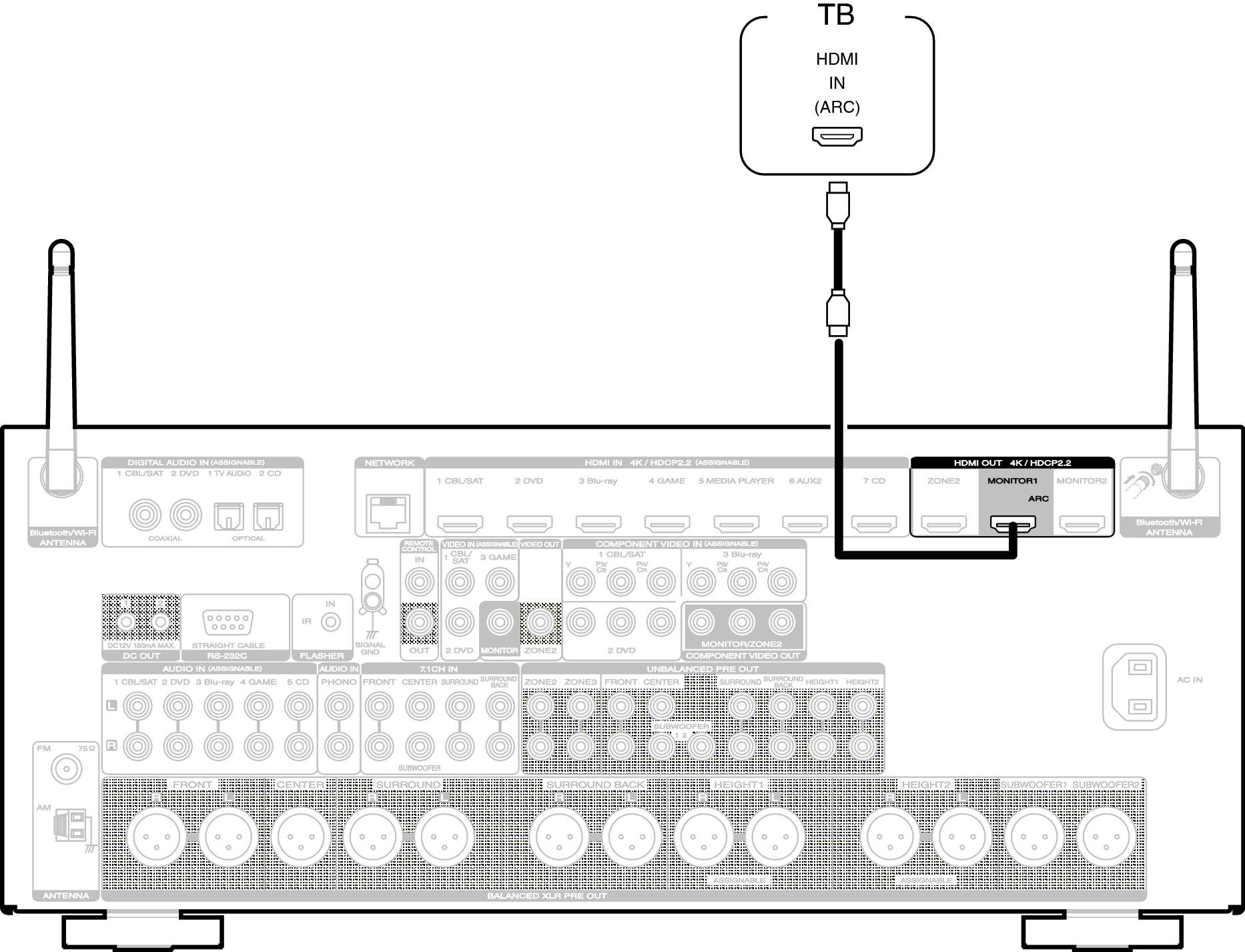 При использовании функции ARC подключите к разъему HDMI MONITOR 1.