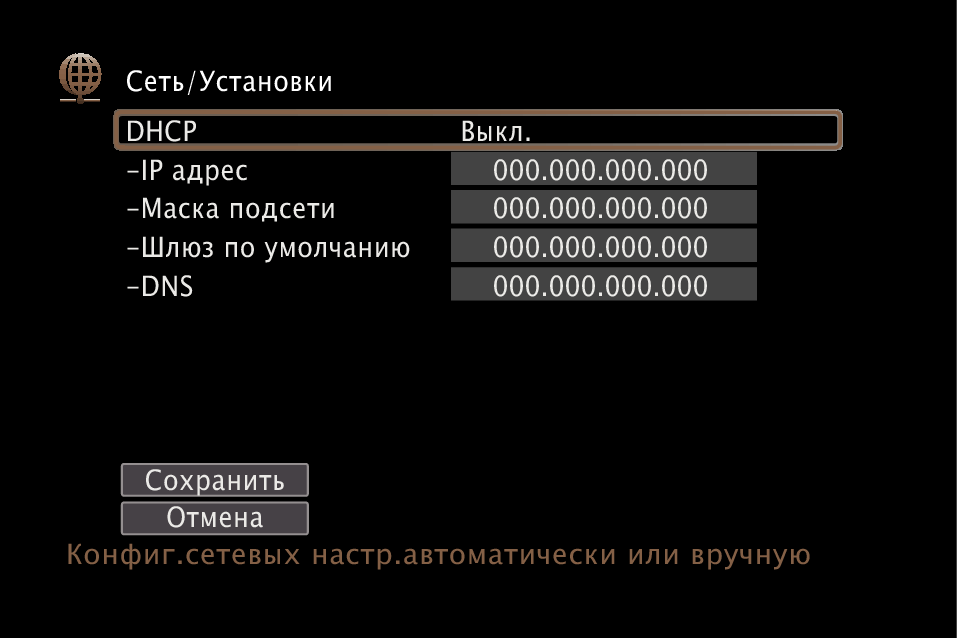 Настройка параметров сети вручную.