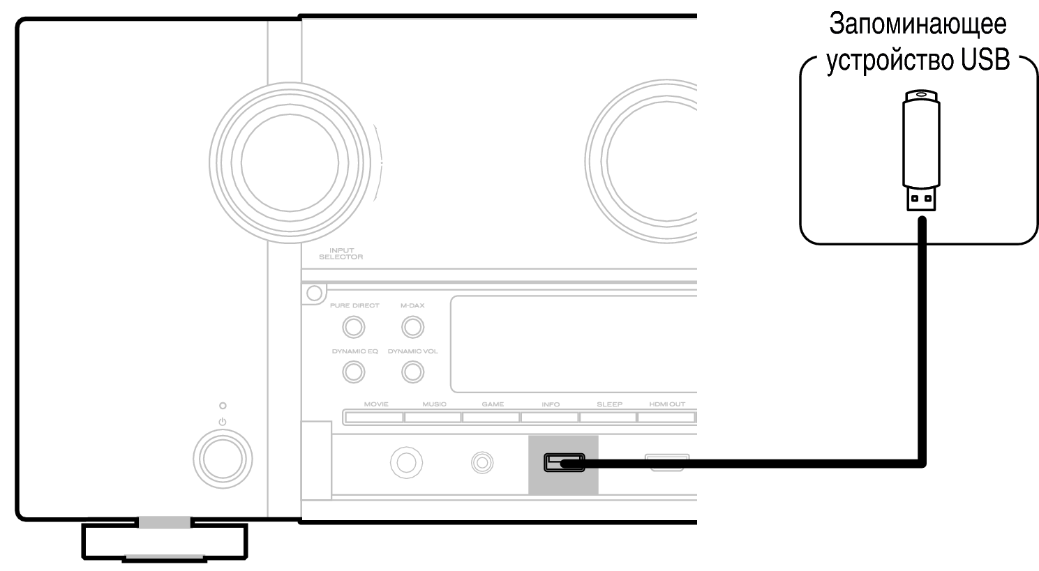 Компания Marantz не гарантирует, что все запоминающие устройства USB будут работать или получать электропитание. При использовании портативного жесткого диска с USB-соединением, который поставлялся в комплекте с блоком питания, используйте блок питания из комплекта.
