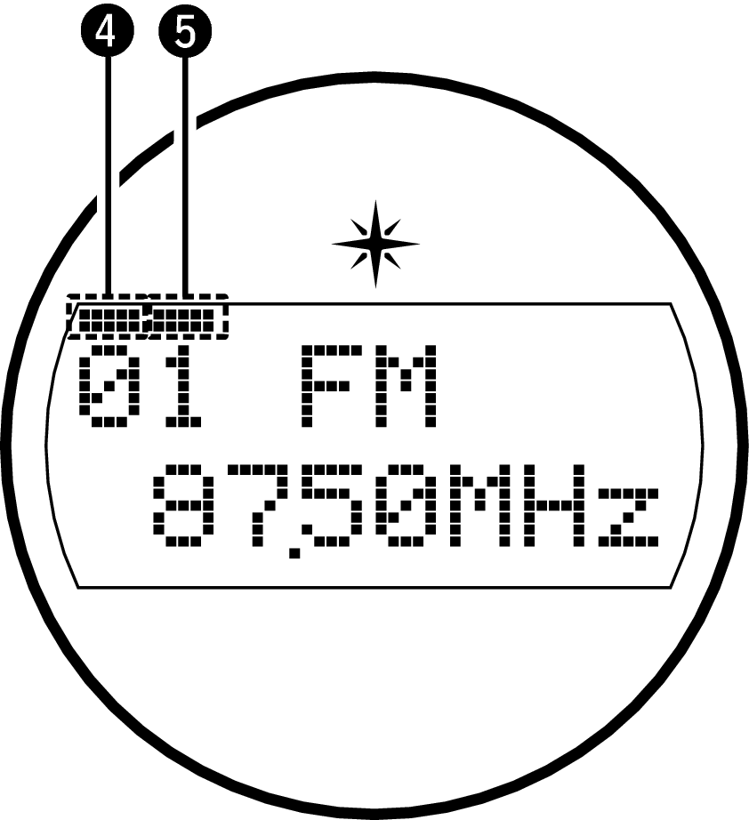 STEREO: Загорается при приеме радиовещания в стереодиапазоне FM.