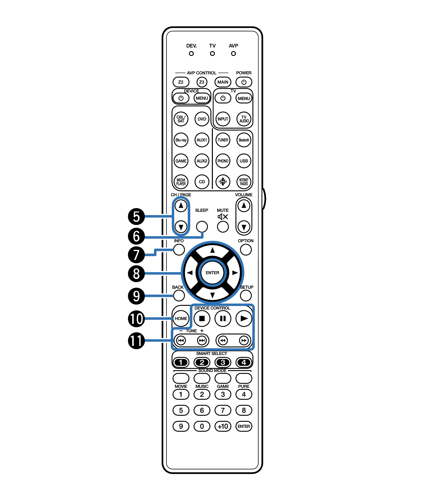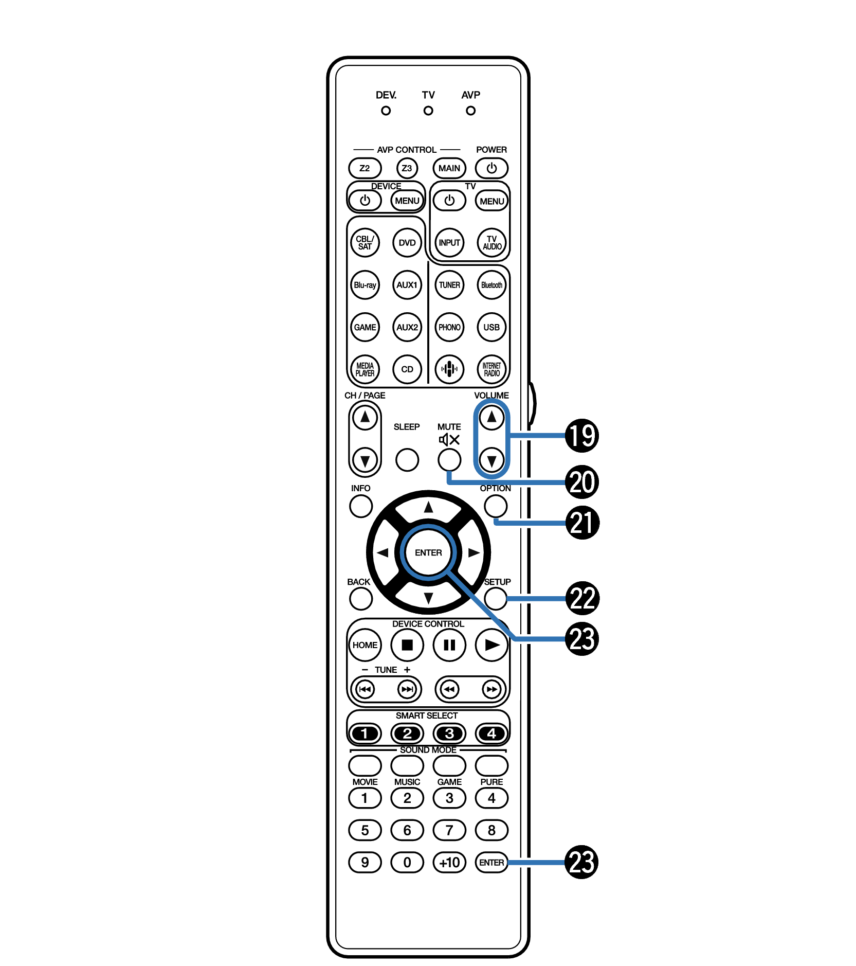 Кнопки управления AVP (AVP CONTROL MAIN, Z2, Z3)