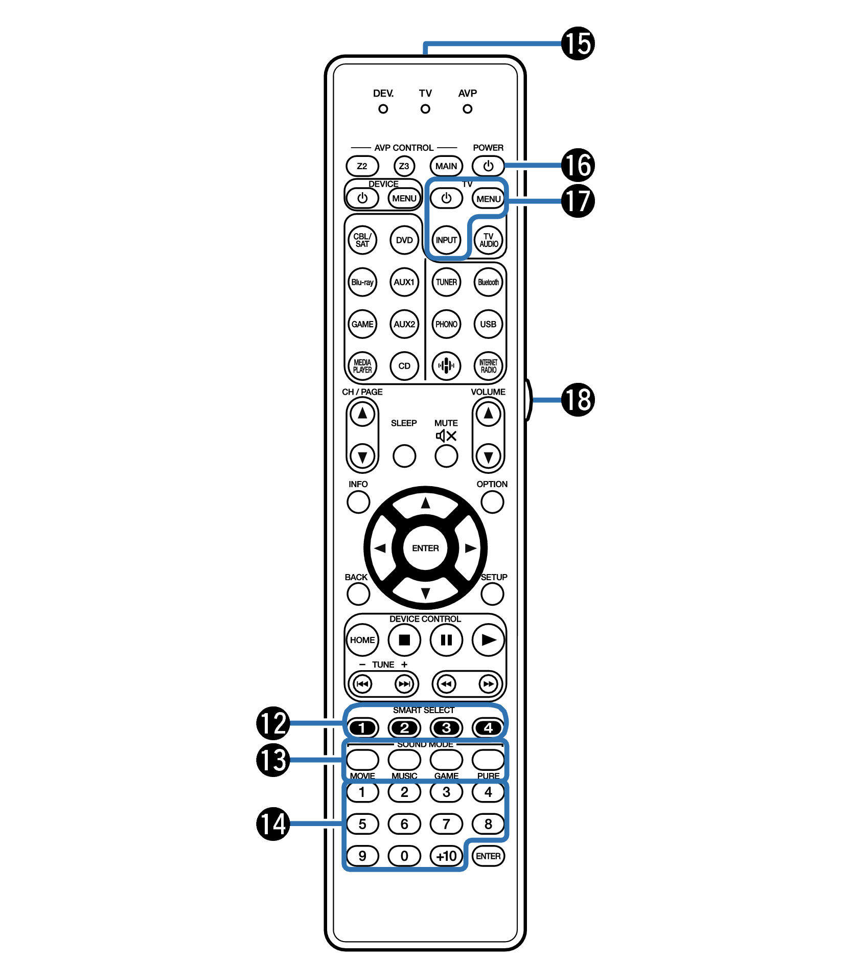 Используются для выбора зоны (MAIN ZONE, ZONE2, ZONE3), управляемой пультом ДУ.