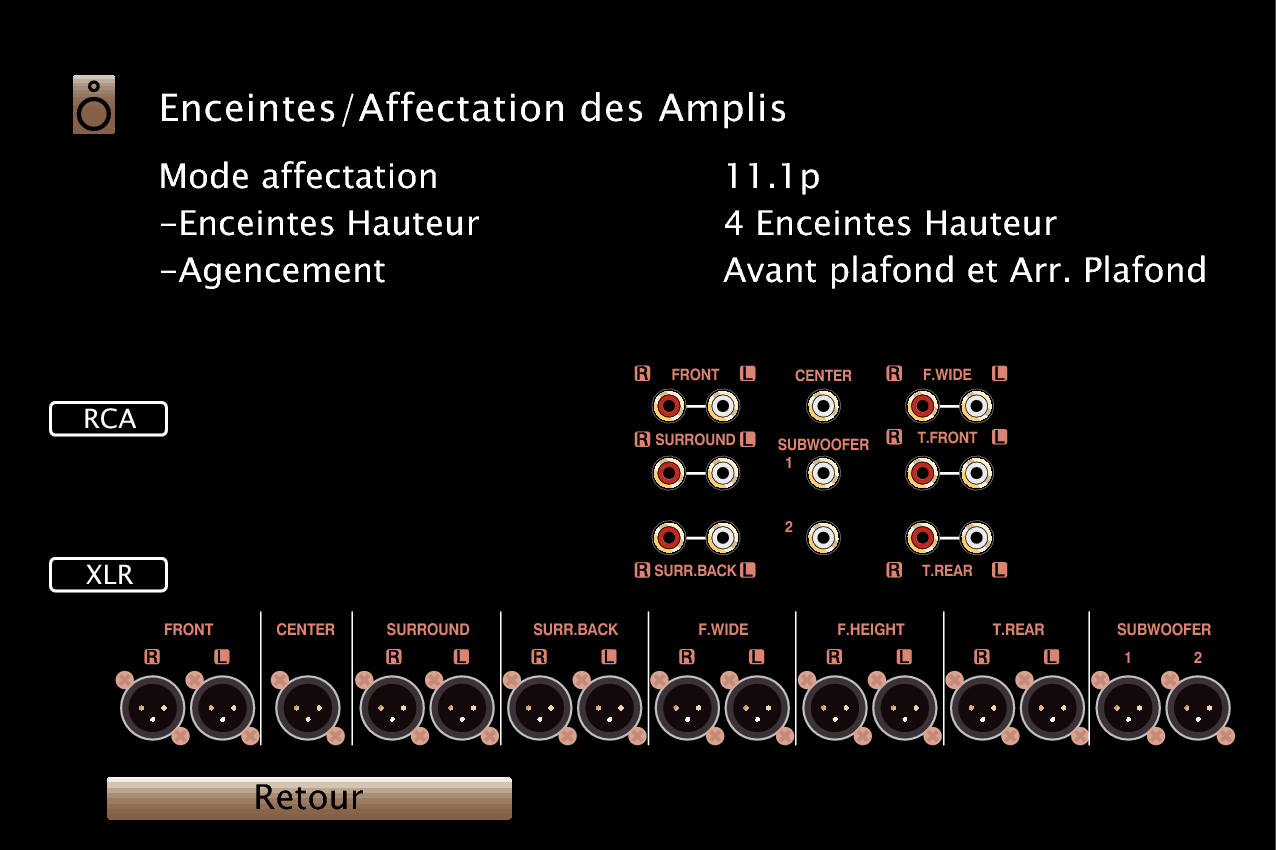 Effectuez le paramétrage “Affectation des Amplis” en fonction du nombre de pièces et de la configuration des enceintes qui seront installées. lien