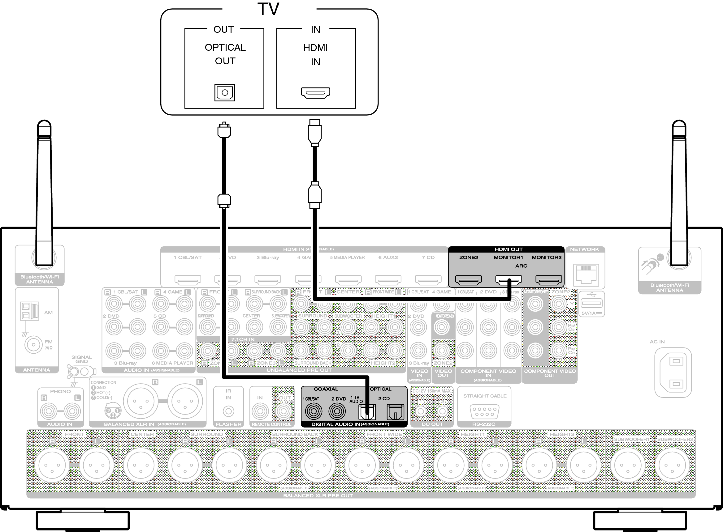 Pour écouter l’audio du téléviseur sur cet appareil, utilisez le câble optique pour connecter le téléviseur à cet appareil.