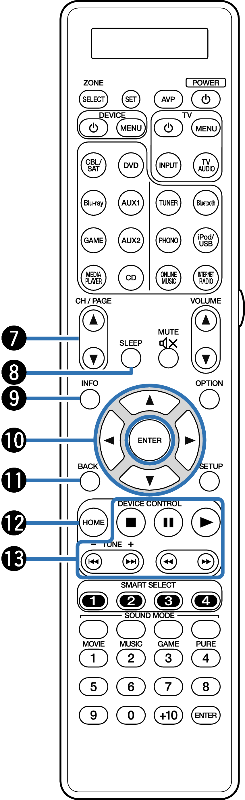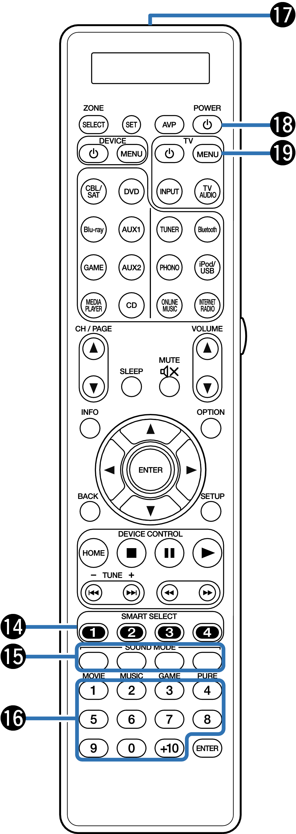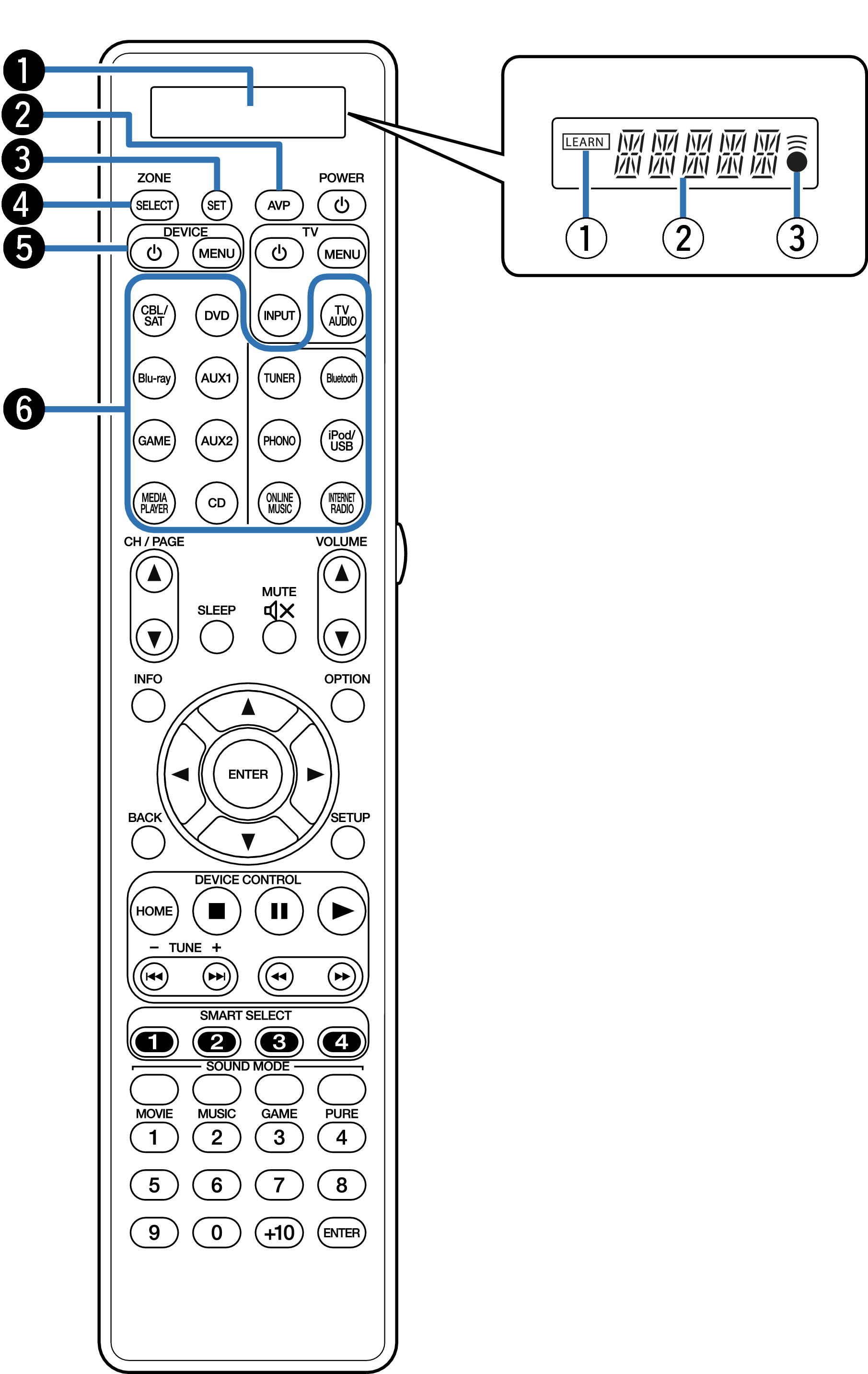 Ces touches permettent de changer la zone (MAIN ZONE, ZONE2, ZONE3) pilotée par la télécommande. lien, lien