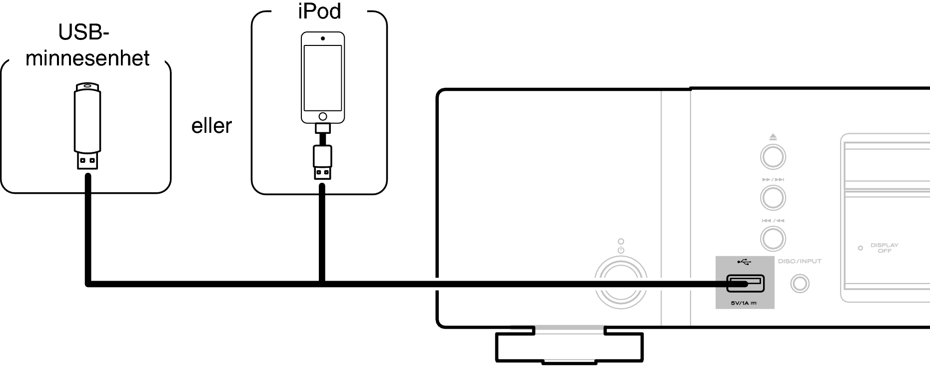 Marantz garanterar inte att alla USB-minnesenheter fungerar med eller kan strömförsörjas av denna apparat. När du använder en bärbar USB-hårddisk (HDD) som har levererats med nätadapter ska denna nätadapter användas i första hand.