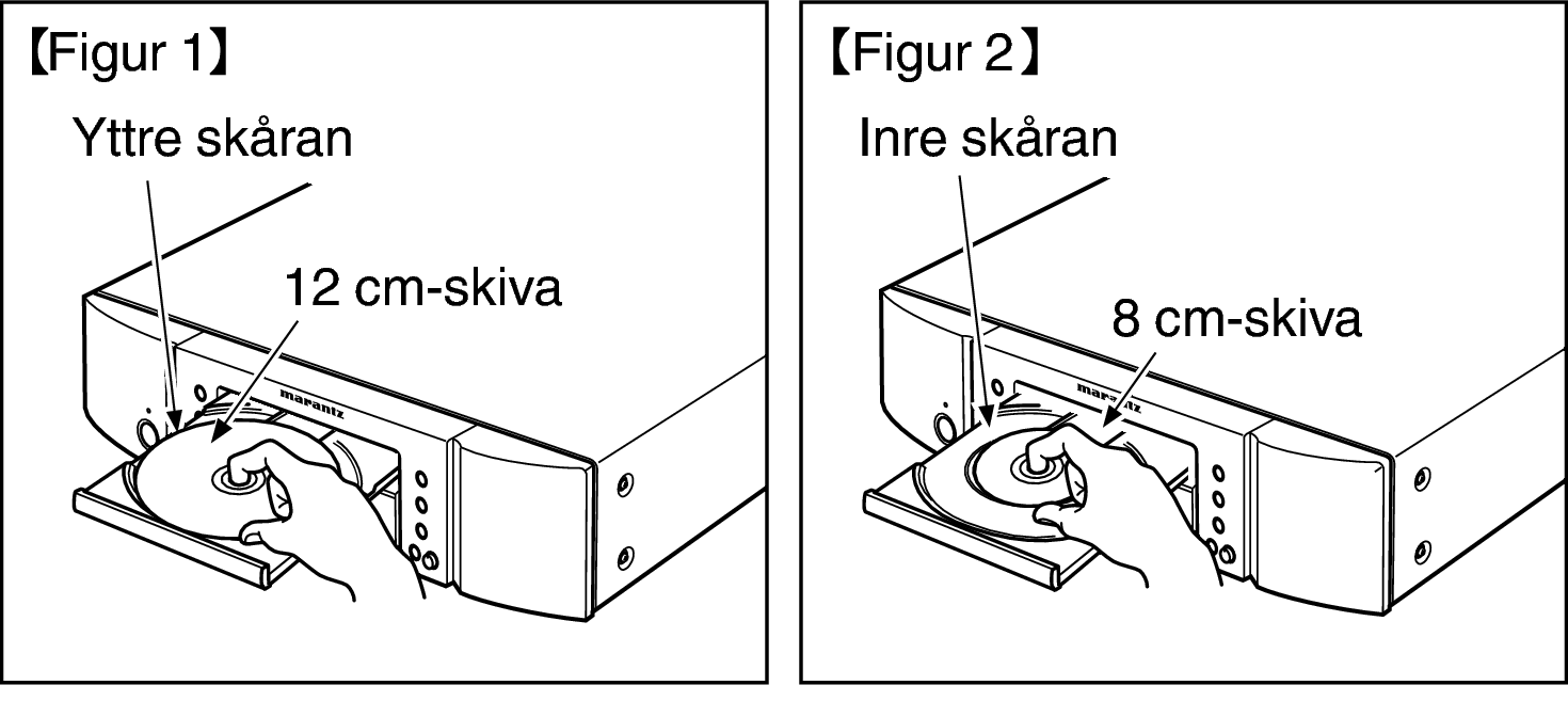 När du spelar upp 8 cm skivor skall du placera dem i innerskåran utan att använda en adapter.