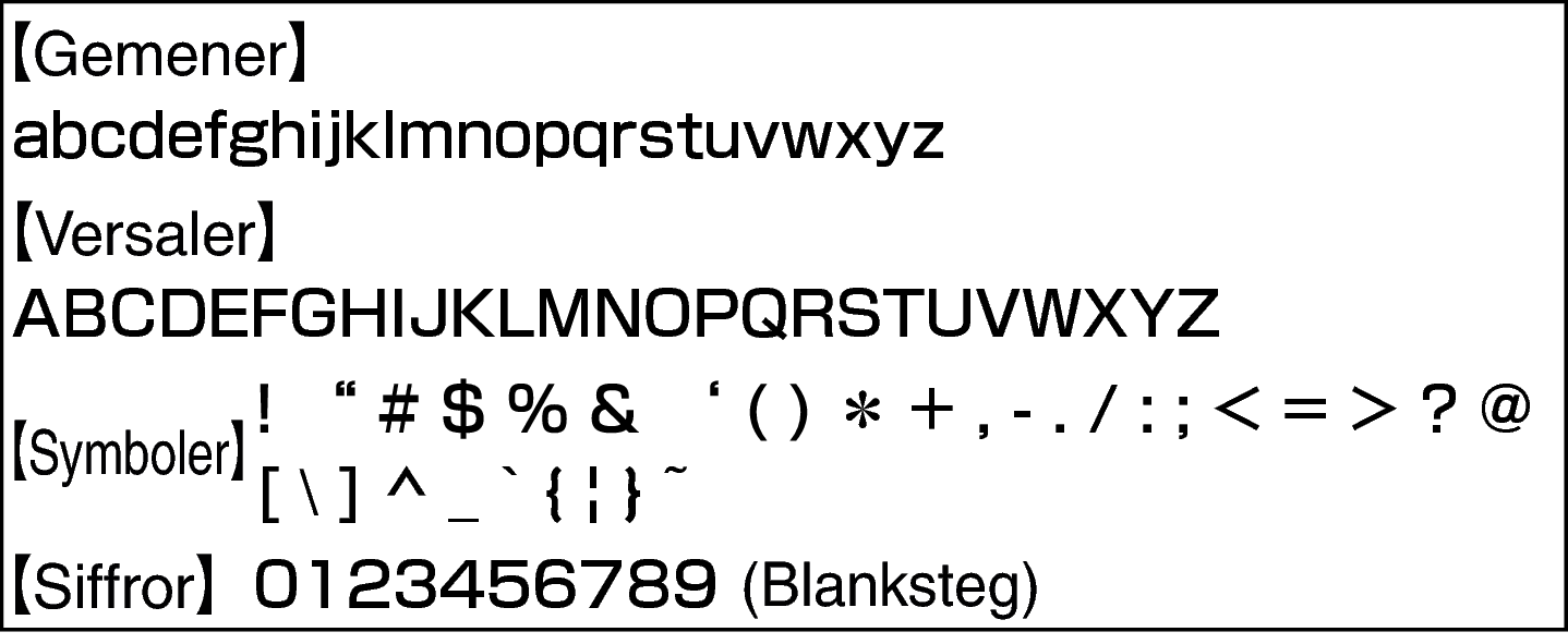 för att byta tecken.Tecknen som kan matas in visas nedan.