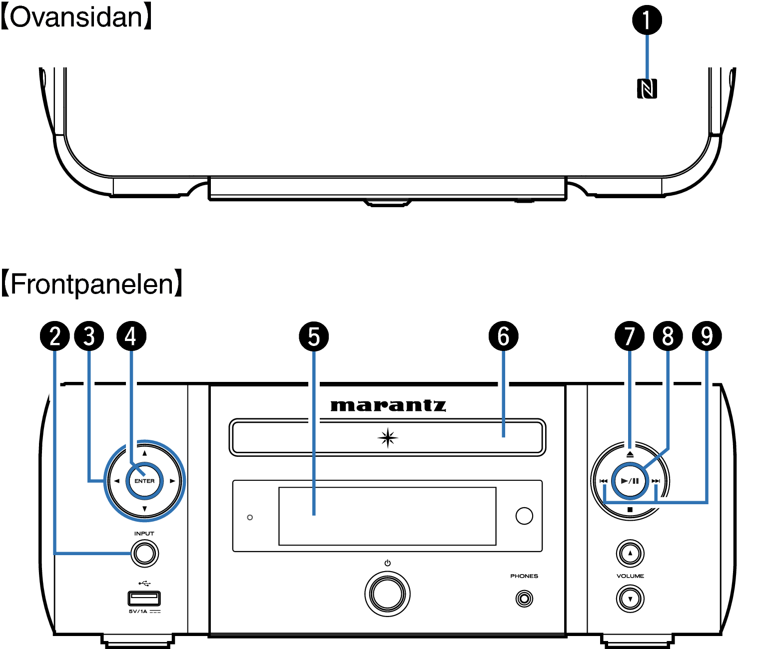 Lyser när strömmen är på. Belysningsfärgen kan ändra/stängas av med “Belysning” i menyn. länk