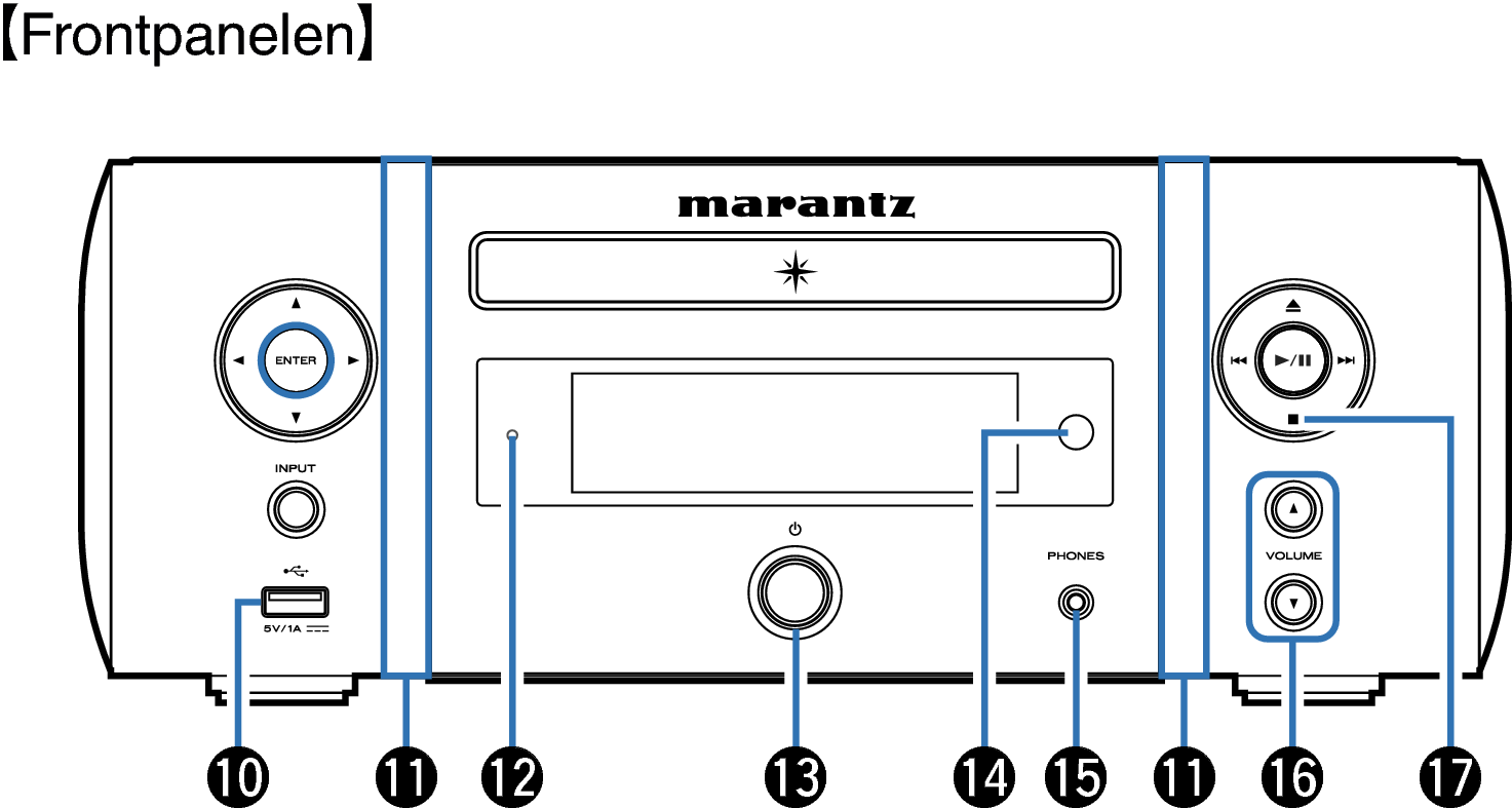 När hörlurarna ansluts till detta uttag spelas inte längre ljud upp från högtalaranslutningarna, SW OUT-anslutningen och AUDIO OUT-anslutningarna.