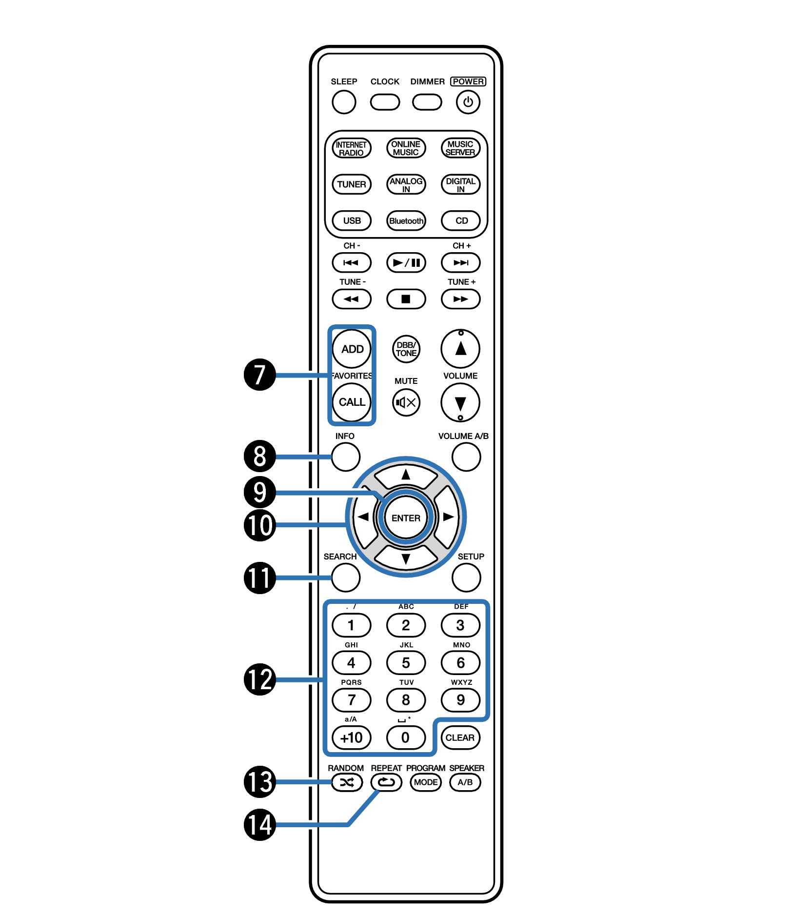 FAVORITES ADD/CALL-knappar