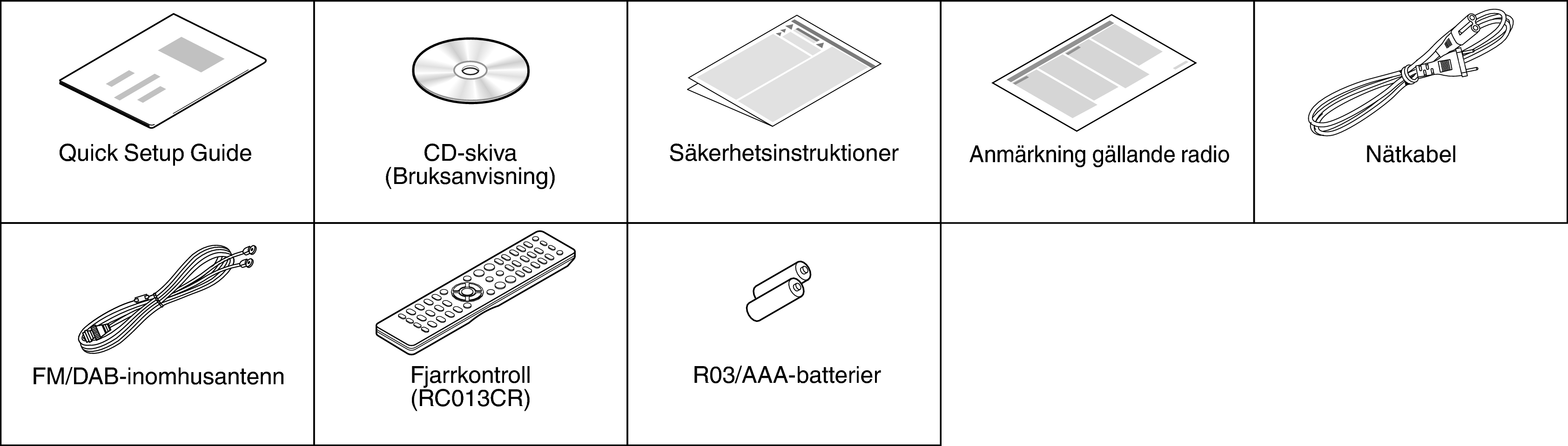 Kontrollera att följande saker levereras tillsammans med produkten.