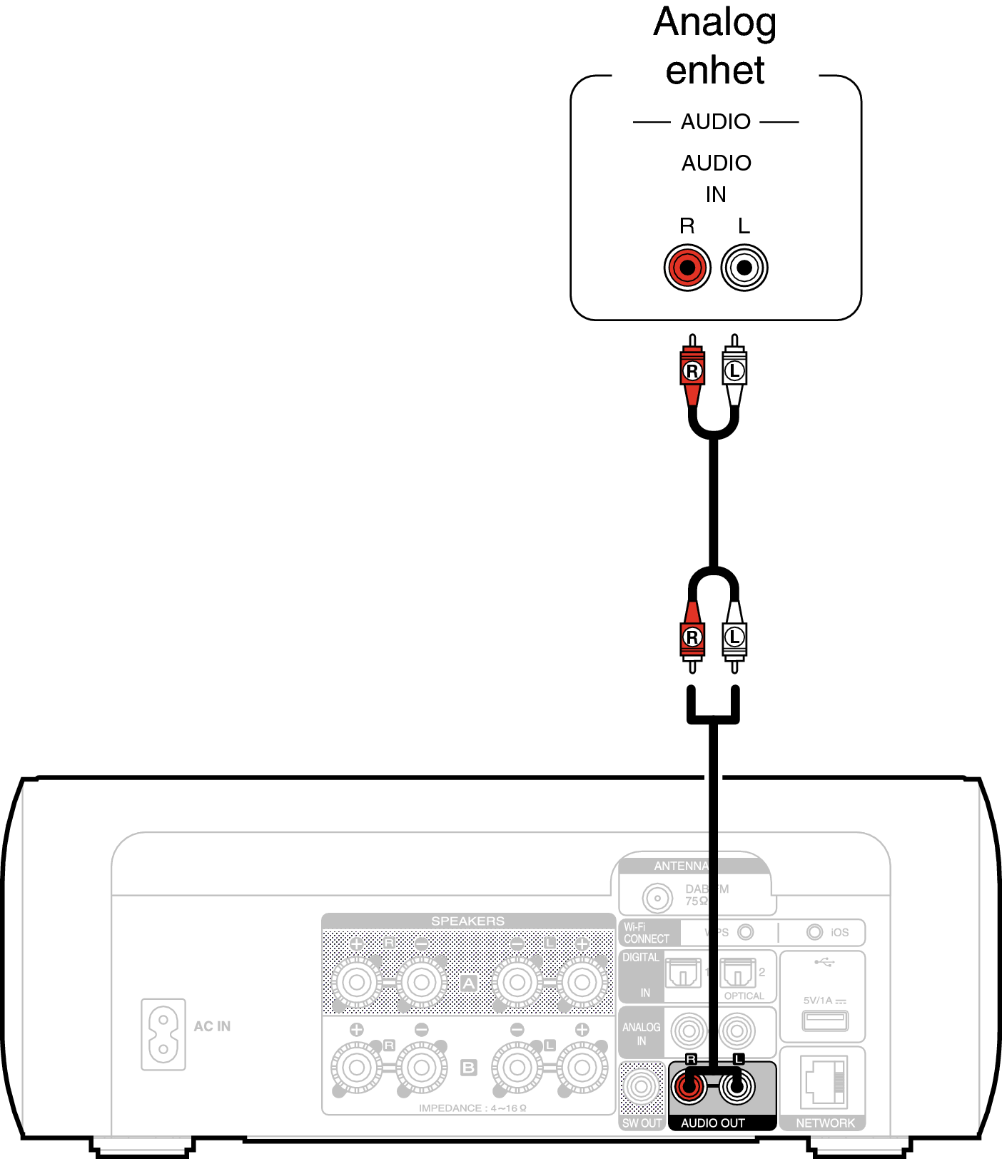 Du kan ansluta den här enheten till olika enheter med analoga ljudingångar.