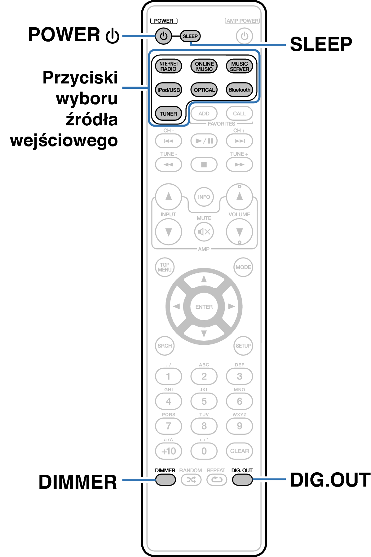 Przyciski na pilocie zdalnego sterowania służące do wykonania tej operacji