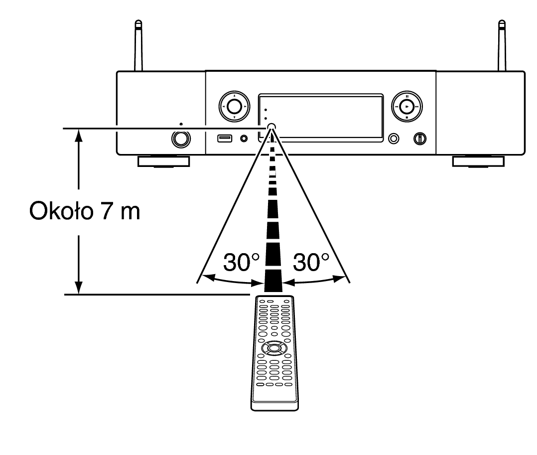 Chcąc sterować urządzeniem za pomocą pilota zdalnego sterowania, nakieruj pilota na odbiornik sygnału zdalnego sterowania znajdujący się w tym urządzeniu.
