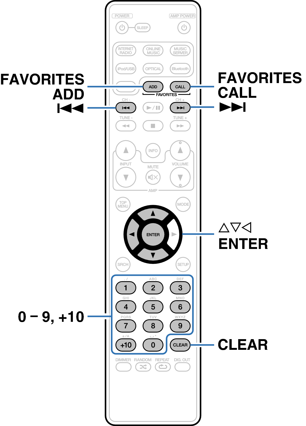 Istnieje możliwość rejestracji i wywołania treści takich jak internetowa stacja radiowa, serwer muzyczny, USB oraz iPod (tylko w trybie Remote iPod).