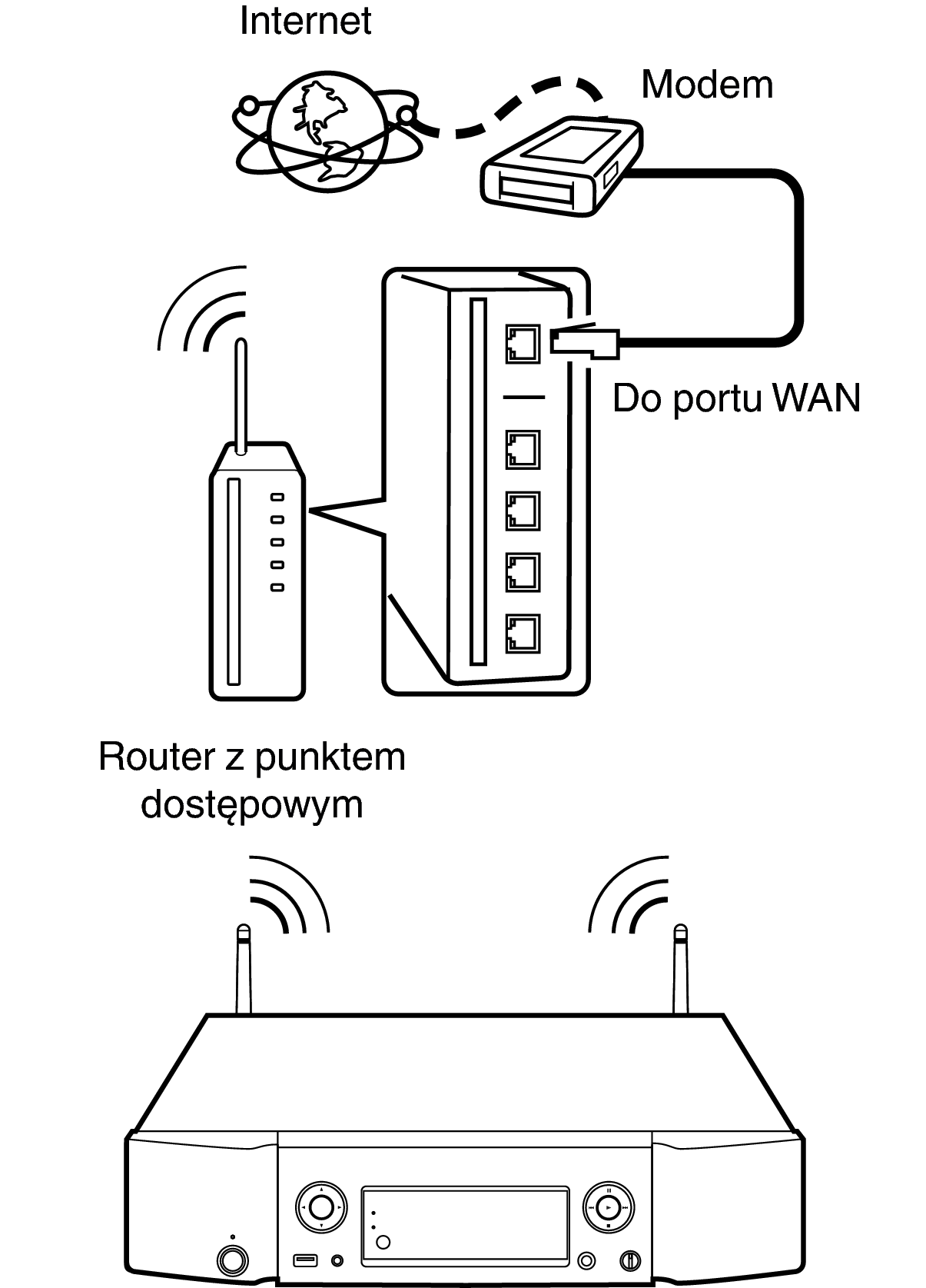 Do współpracy z amplitunerem, zalecamy użycie routera wyposażonego w następujące funkcje:
