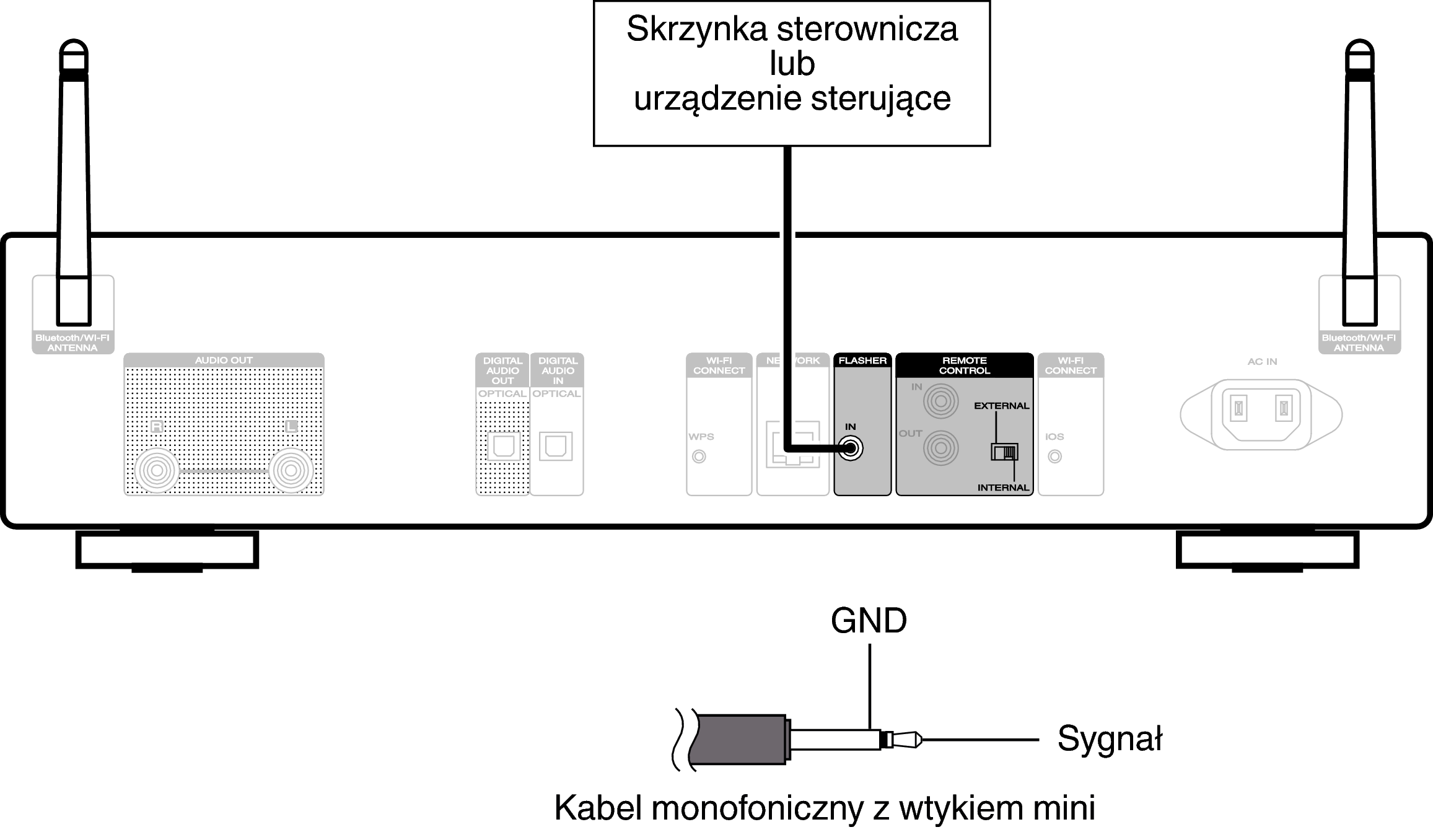 Aby używać gniazda FLASHER IN, ustaw przełącznik EXTERNAL/INTERNAL na “INTERNAL”.
