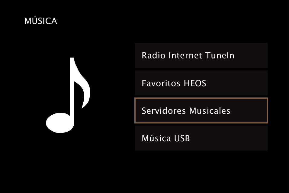 para seleccionar “Servidores Musicales” y, a continuación, pulse ENTER.