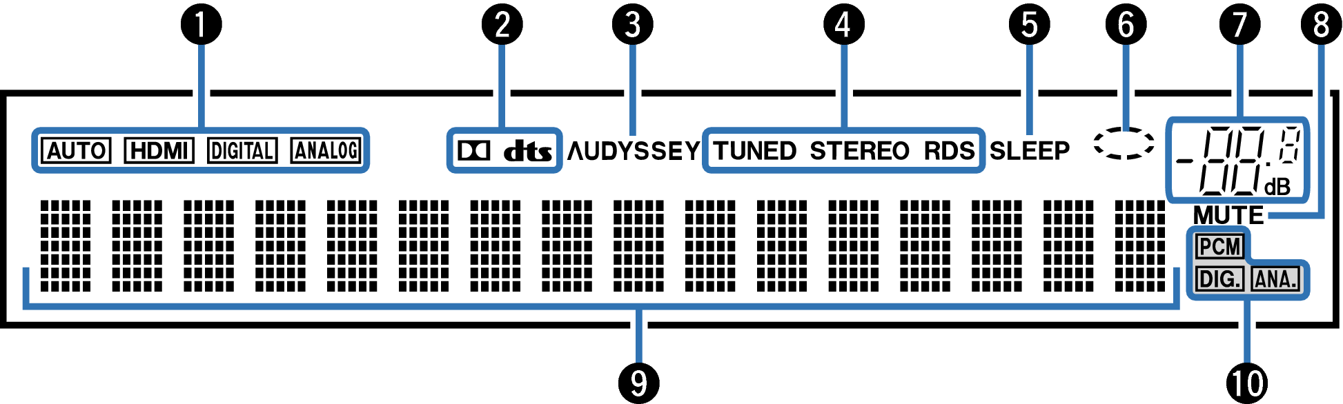 Se iluminan según las condiciones de recepción cuando la fuente de entrada está ajustada a “Tuner”.