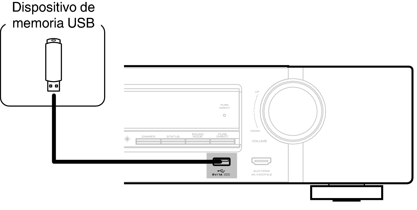 Marantz no garantiza el funcionamiento de todos los dispositivos de memoria USB ni que éstos reciban energía. Cuando use una unidad de disco duro (HDD) USB portátil que venía con un adaptador de CA, use ese adaptador de CA suministrado con el dispositivo.