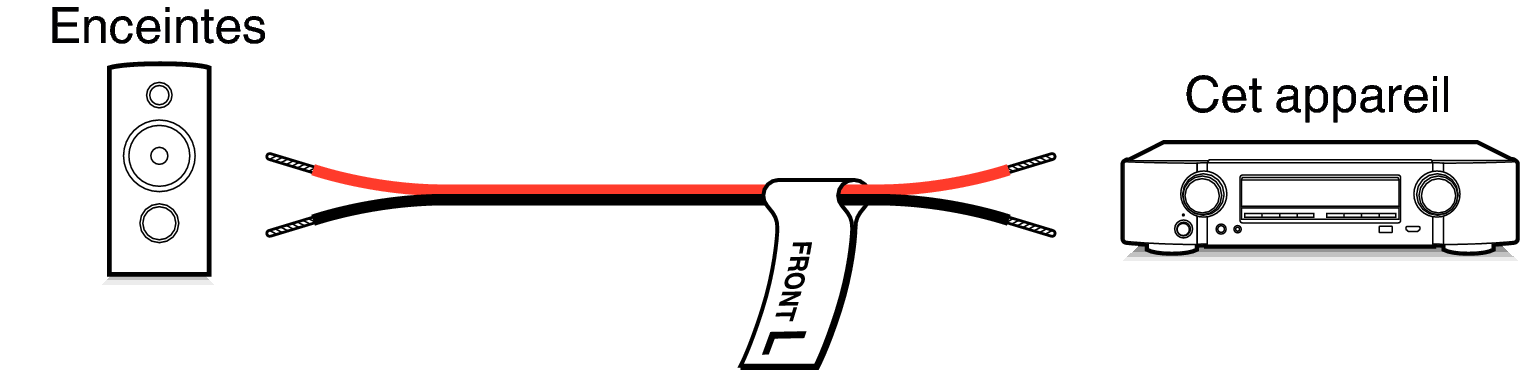 Fixez l’étiquette du câble correspondant à chaque enceinte sur chacun des câbles d’enceinte. Cela facilite le branchement du câble approprié sur les bornes d’enceintes du panneau arrière.