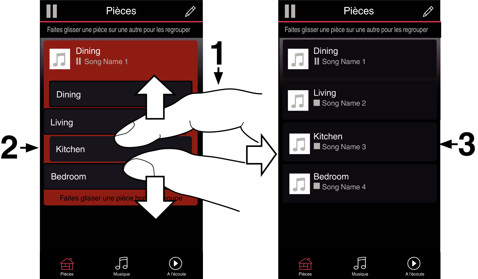 Vous pouvez aisément dégrouper toutes les pièces et quitter le mode Soirée d’un simple “écartement” des doigts.