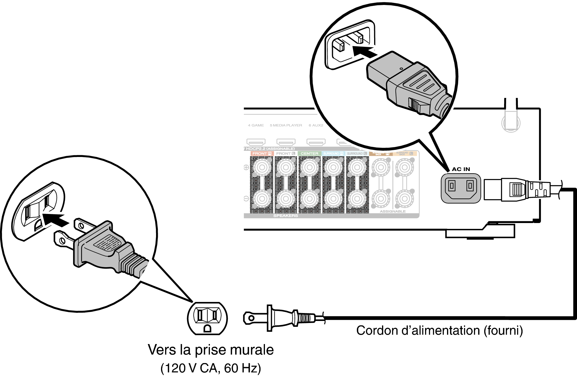 Une fois toutes les connexions effectuées, insérez la fiche d’alimentation dans la prise murale.