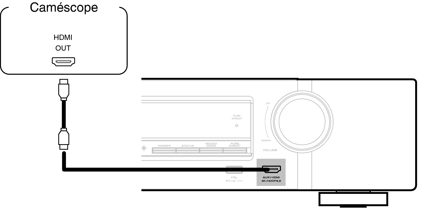 Cette explication utilise la connexion avec un caméscope vidéo comme exemple.