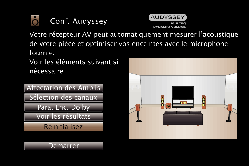 Retour aux réglages “Conf. Audyssey®”