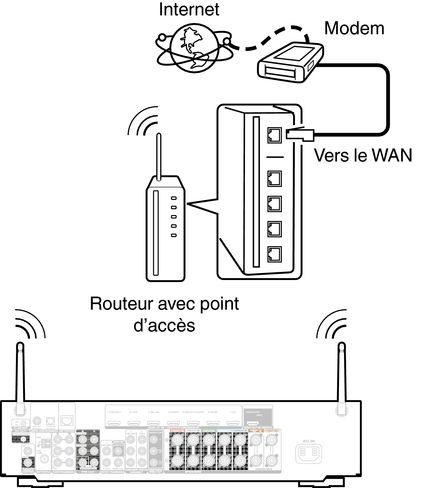 Ne connectez pas une borne NETWORK directement au port LAN/à la borne Ethernet de votre ordinateur.