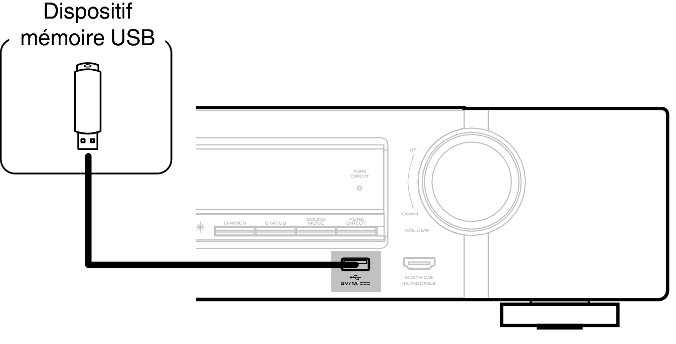 Marantz ne garantit pas que tous les dispositifs mémoire USB fonctionnent ou soient alimentés. Lorsque vous utilisez un disque dur USB portable livré avec un adaptateur secteur, utilisez l’adaptateur secteur fourni avec cet appareil.