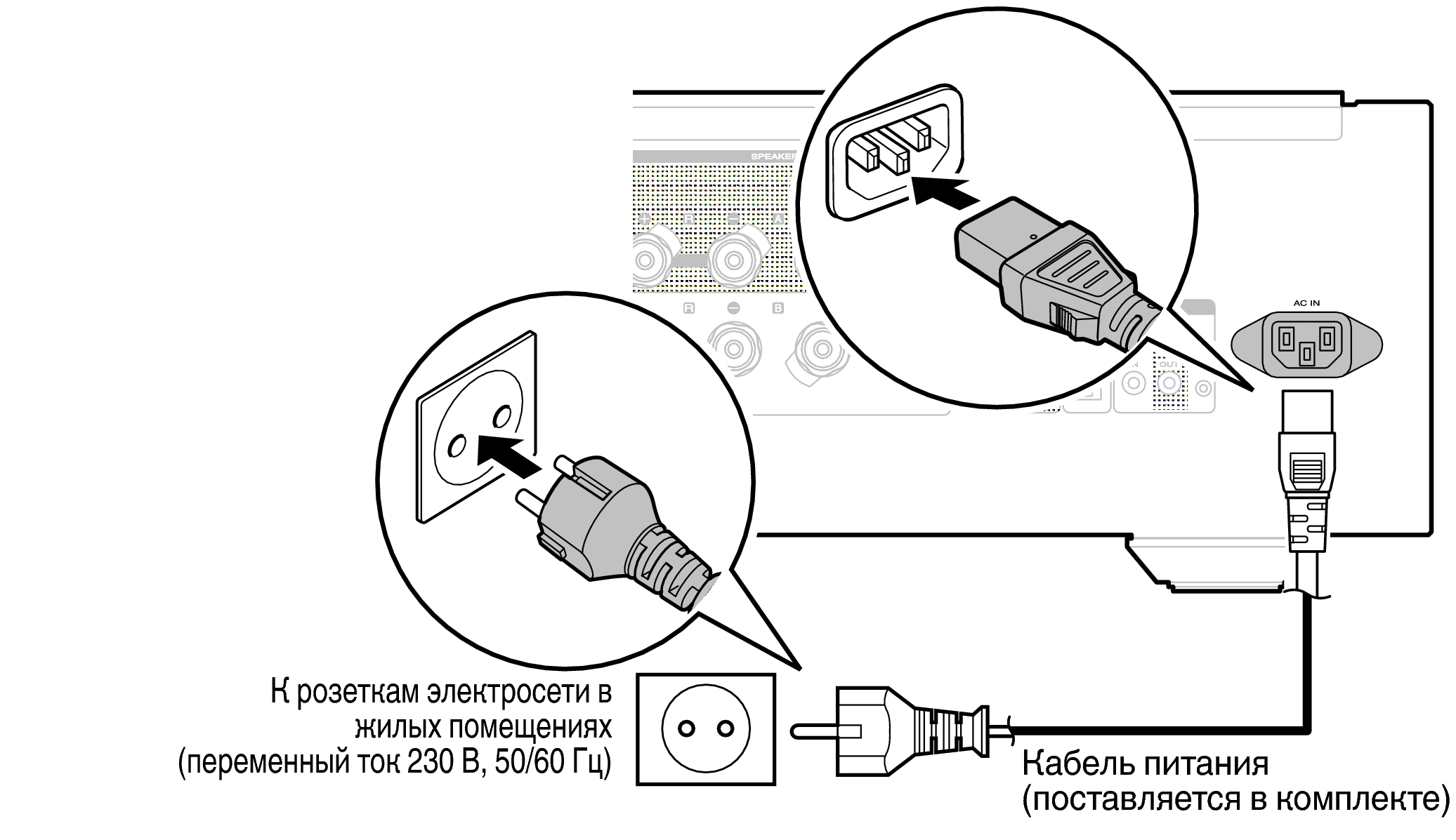 Прежде чем подключать к усилителю шнур питания, выполните все необходимые соединения.
