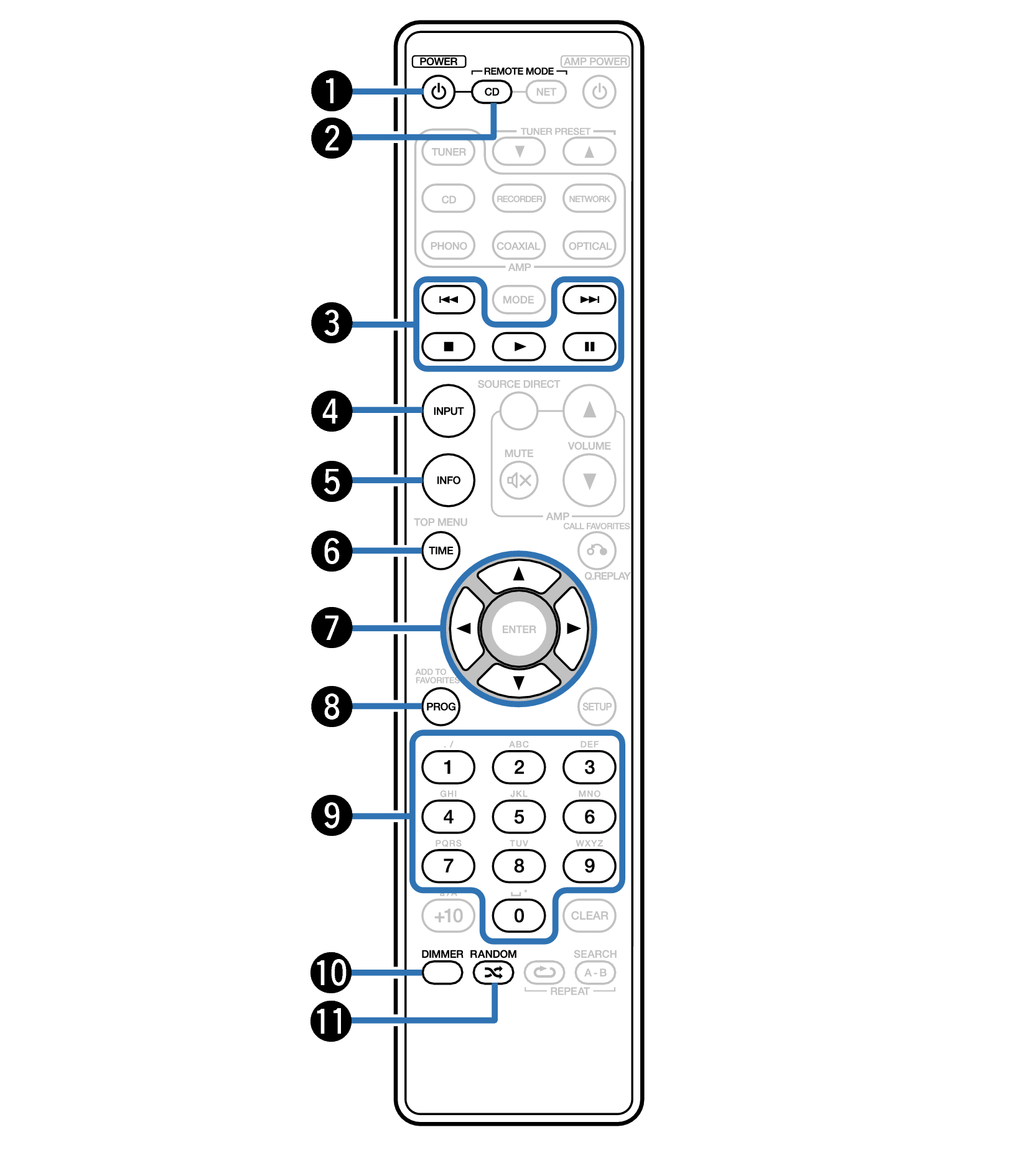Botón de selección de modo remoto (REMOTE MODE CD)