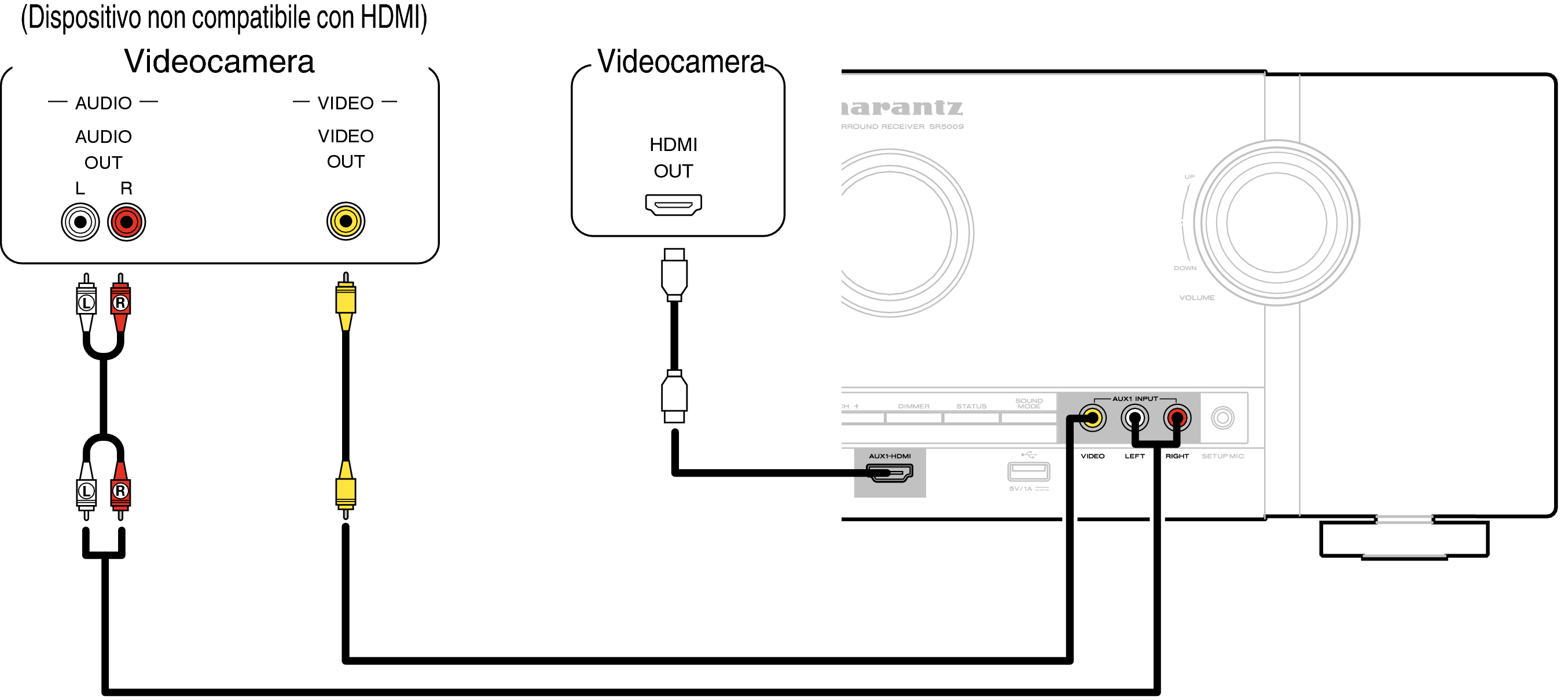 Collegare un dispositivo di riproduzione a questa unità, ad esempio una videocamera o una console per giochi.