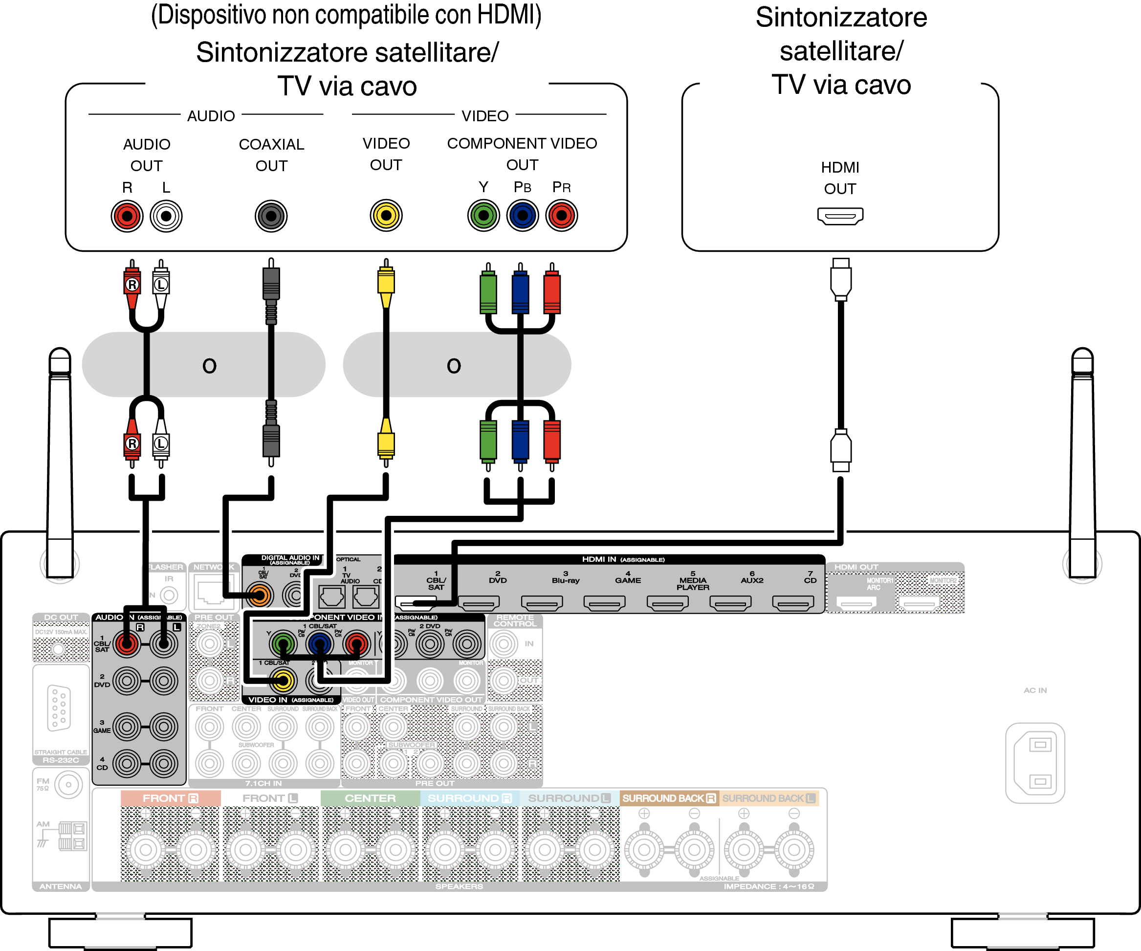 Collegamento di un ricevitore (Sintonizzatore satellitare/TV via cavo)