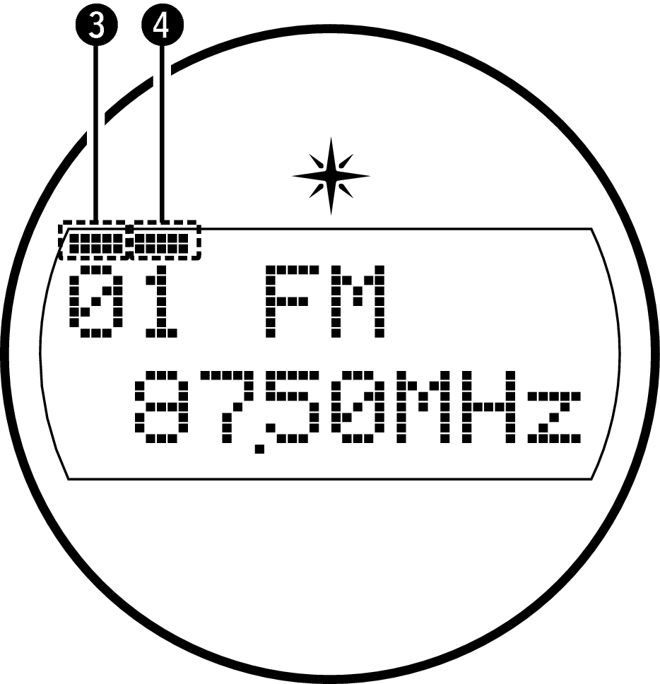 I FM-läget tänds denna vid mottagning av stereosändningar.