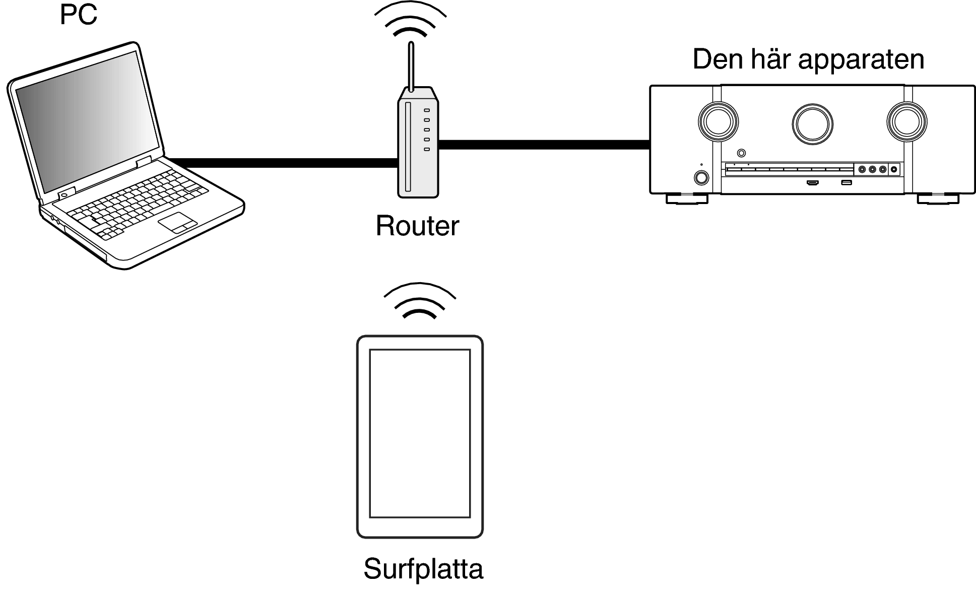 Den här enheten och datorn måste vara rätt anslutna till nätverket för att webbkontrollfunktionen ska kunna användas. (Ansluta till ett hemmanätverk (LAN)länk)