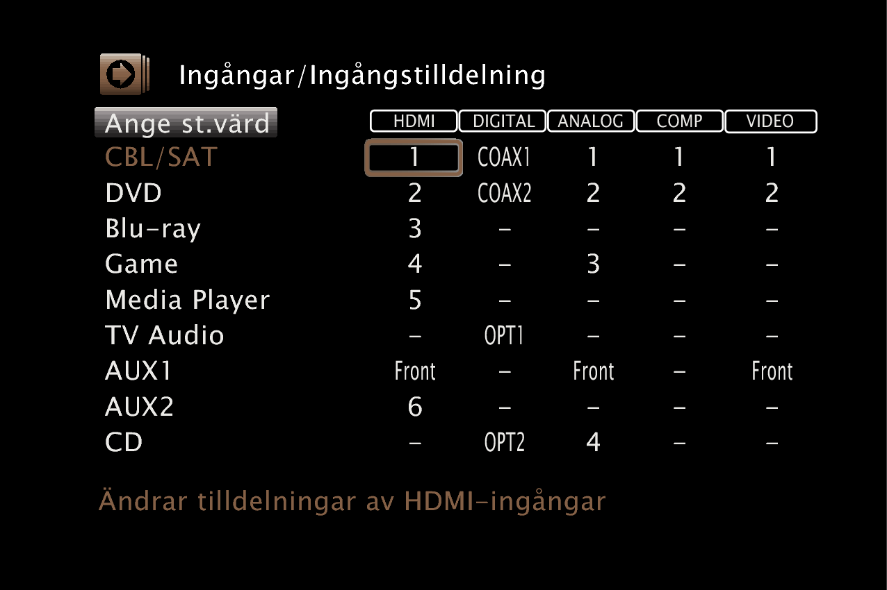Ställ in detta för att ändra de HDMI-kontakter som ingångskällorna är tilldelade.